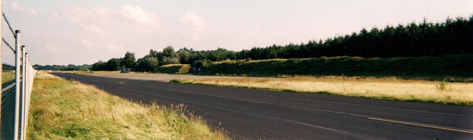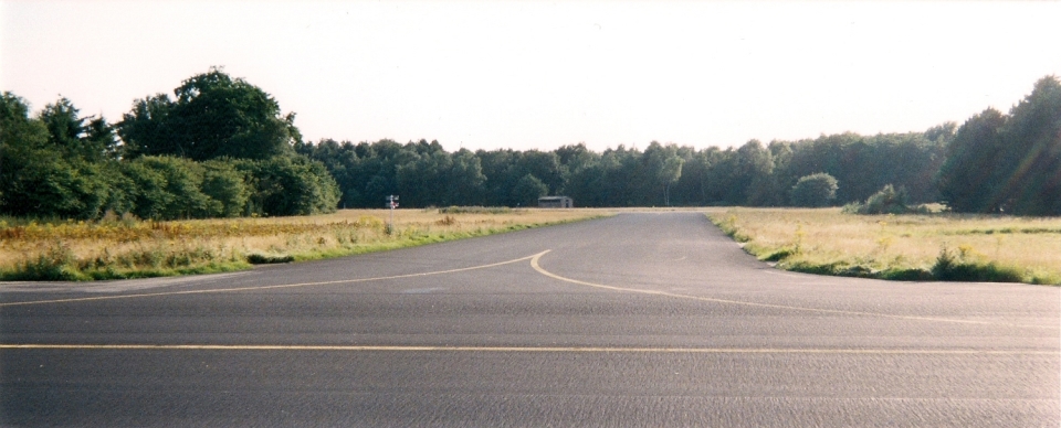 Ondanks het feit dat Eindhoven maar liefst drie oude Duitse banen kende, is de zuidwest-noordoost baan in de volksmond het langst 'de oude Duitse baan' genoemd. Waarschijnlijk vanwege het feit dat deze baan als enige geen echte nieuwe bestemming had gekregen. Hier kijk je vanaf de zuidelijk kop recht over de baan naar het noorden. Rechts in beeld zie je de overgebleven zandheuvels en opstelplaatsen van het al lang vertrokken Hawk luchtdoelraket squadron. Vooraan liggen stapels betonnen platen opgeslagen. Deze waren ooit bedoeld om in oorlogstijd redelijk makkelijk en snel schade aan rol- en startbanen te kunnen repareren. Verder zie je wat autowrakken, waarvan ik het vermoeden heb dat ze door de brandweer voor training werden gebruikt.