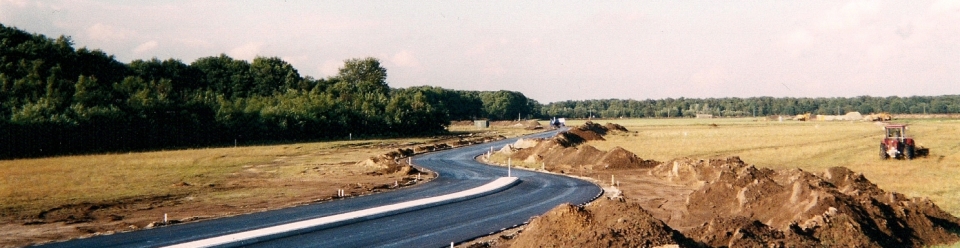 Hier zie je de aanleg van de weg die tegenwoordig de hoofduitgang van Vliegbasis Eindhoven vormt. De boomrand is vandaag de dag nog herkenbaar. Naast die boomrand liep ooit een rolbaan met diverse dispersals. Het is mij niet bekend wanneer dat stukje infrastructuur is opgebroken, maar voor zover ik weet al een flinke tijd vóór er werkzaamheden begonnen ten behoeve van Meerhoven.