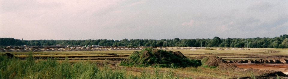 De laatste foto van dit verslag is gemaakt in het midden van het grote oude vliegveld terrein, kijkend richting het Beatrix Kanaal. De zandhopen zijn de eerste tekenen van een complete woonwijk-in-aanbouw: Meerhoven.